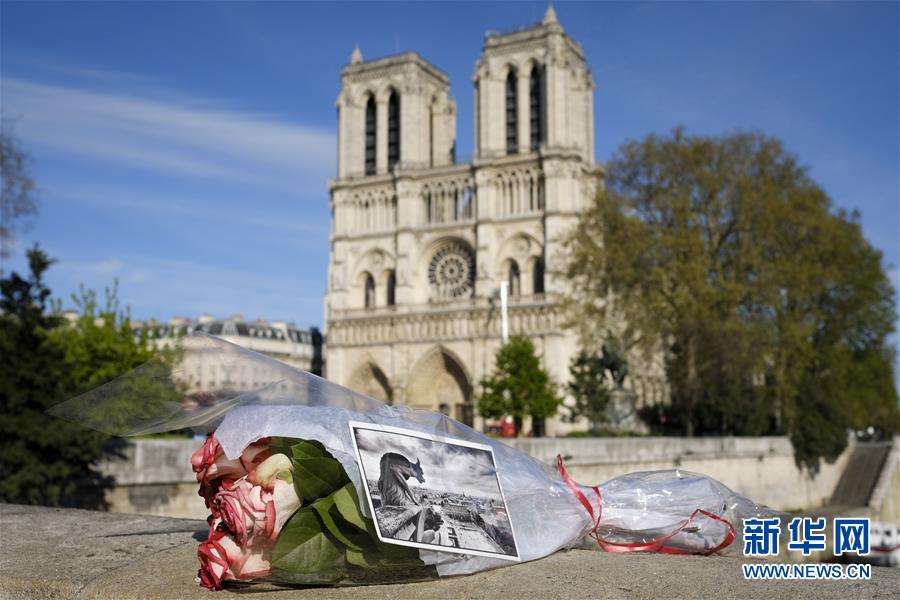 4月17日,在法国巴黎,一束鲜花摆放在火灾后的巴黎圣母院附近。 法国负责调查巴黎圣母院大火的检察官雷米·海茨17日说,目前火灾原因主要指向“事故因素”。初步调查显示,倒塌的塔尖下方可能是最初的起火点。巴黎圣母院15日突发火灾,圣母院的屋顶和塔尖被烧毁,但主体建筑得以保存。 新华社发(亚历山大·卡曼摄)