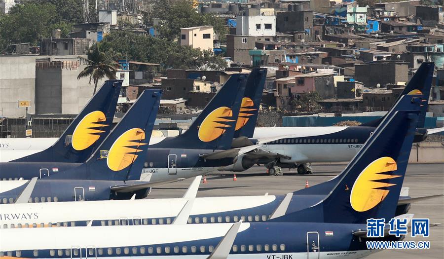 4月18日,在印度孟买,印度捷特航空公司的飞机停在孟买贾特拉帕蒂·希瓦吉国际机场的停机坪上。 由于未能按计划获得过渡资金,债务缠身的印度捷特航空公司17日晚宣布,在飞完当天最后一趟航班后,其国内外航班将全面停飞。 新华社发