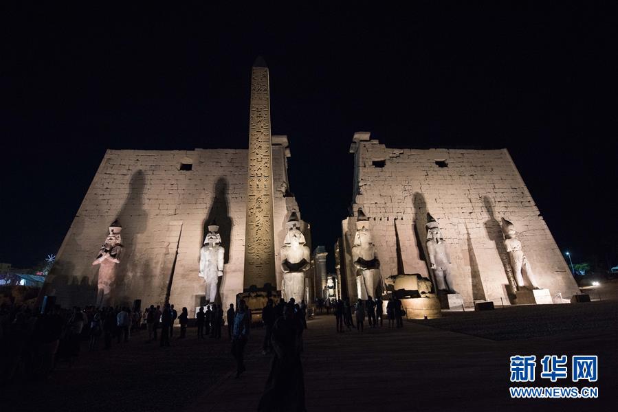 4月18日,在埃及南部卢克索省,人们参加新修复的拉美西斯二世巨型雕像揭幕式。新华社记者 孟涛 摄