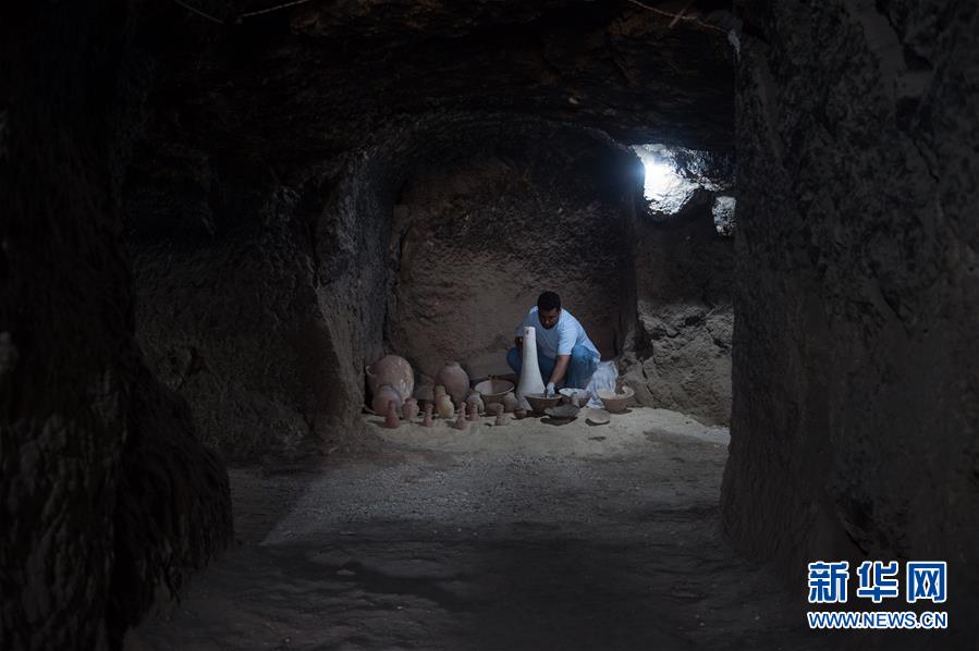 4月18日,在埃及南部卢克索省,考古人员在古埃及王室成员墓葬现场工作。新华社记者 孟涛 摄
