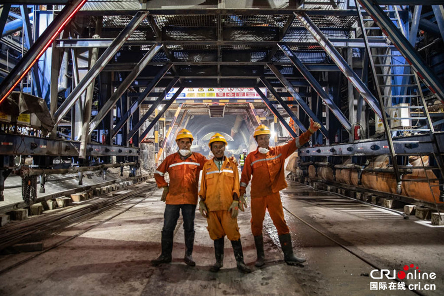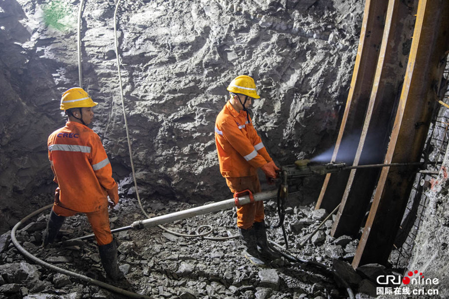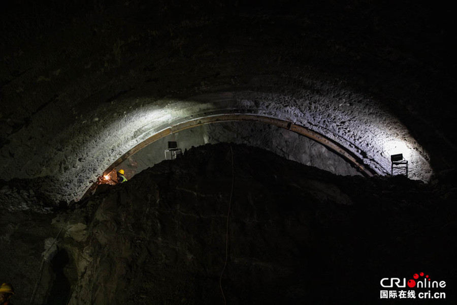 正在雅万高铁瓦力尼隧道中作业中印尼员工 摄影:李树坤