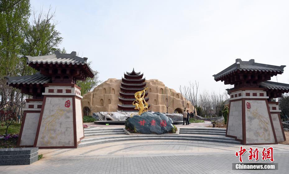 4月19日,北京世园会中华园艺展示区内的甘肃园。2019年中国北京世界园艺博览会(简称北京世园会)将于4月29日至10月7日在北京延庆举行。本届世园会将有约110个国家和国际组织、120多个非官方参展方参展。中新社记者 侯宇 摄