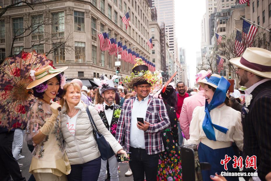 当地时间4月21日,人们在纽约参加复活节花帽游行。当日是西方传统节日复活节,人们头戴精心制作的花帽,在纽约第五大道参加一年一度的复活节游行。 中新社记者 廖攀 摄