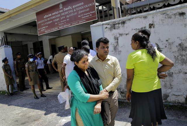 一对斯里兰卡夫妇在医院停尸房认领亲属遗体后离开,悲伤流泪。东方IC 图