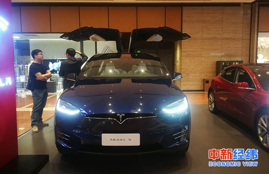 在奔驰某销售店内,中新经纬客户端发现,尽管当天是工作日,但还是有不少人前来看车。