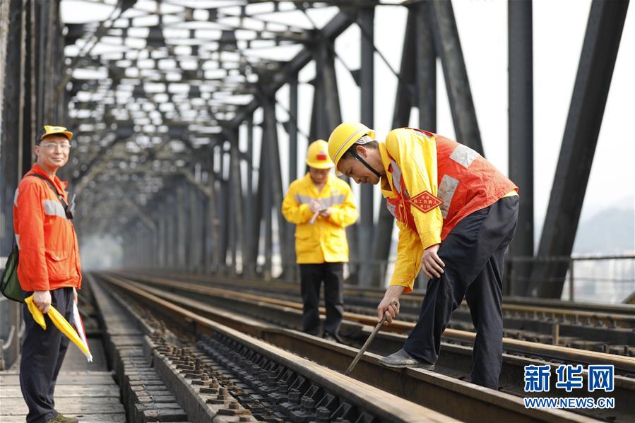 中国铁路成都局有限公司重庆工务段的巡检班组在白沙沱长江大桥上进行巡检作业(4月23日摄)。 4月23日下午5点40分,随着重庆白沙沱长江大桥通行的最后一列客运列车顺利通过,这座“服役”了59年的重庆首座长江大桥进入“退役”倒计时。4月24日后,所有列车将改线经距白沙沱长江大桥约100米的新白沙沱长江特大桥通行,新桥“接力”老桥,运输能力将得到大幅提升。 白沙沱长江大桥于1958年开工,1960年通过首趟列车,是继武汉长江大桥之后的第二座长江大桥。 新华社记者 刘潺 摄