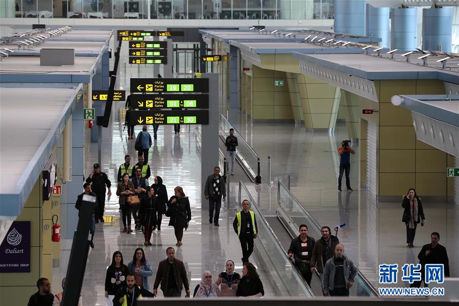 4月24日,在阿尔及利亚首都阿尔及尔,媒体记者参观阿尔及尔新机场候机大厅。 当日,阿尔及尔新机场向媒体开放。该机场由中国建筑股份有限公司承建,年旅客吞吐量预计可达1000万人次,计划将于4月底正式启用。 新华社发
