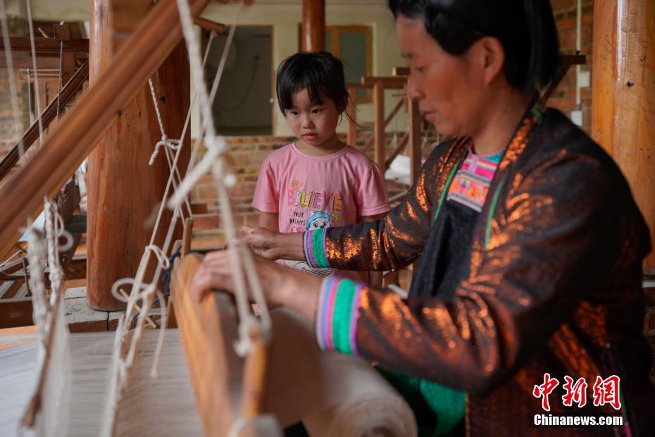 图为来自各个村寨和周边县的侗族妇女在赖蕾的染坊里,既解决了就业的问题,又能照顾到家里的老人和孩子。中新社记者  贺俊怡 摄