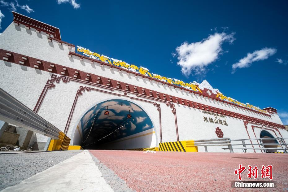 4月26日,世界海拔最高公路特长隧道中国西藏米拉山隧道正式双向通车。这意味着历时6年建设,连接西藏自治区首府拉萨和林芝市的高等级公路(简称拉林公路)全线通车。图为4月25日,由拉萨至林芝方向米拉山隧道口场景。中新社记者 何蓬磊 摄