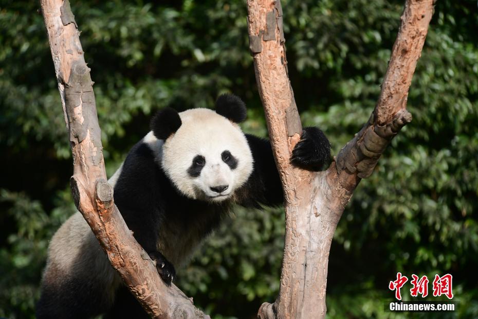 旅法双胞胎大熊猫与游客见面