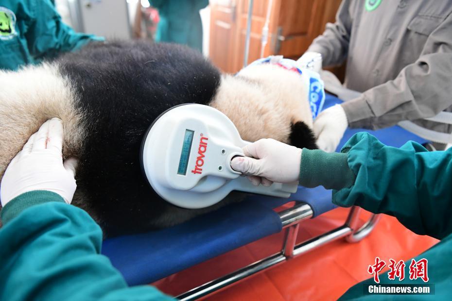 图为中国大熊猫保护研究中心兽医扫描大熊猫“如意”芯片。李传有 摄