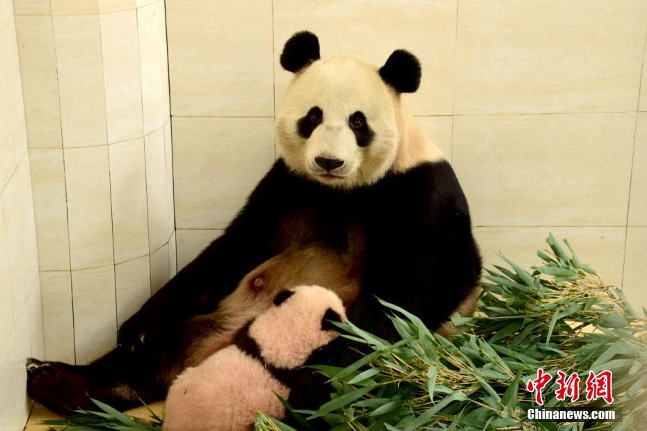 图为大熊猫“如意 ”和妈妈“美茜”在一起。李传有 摄