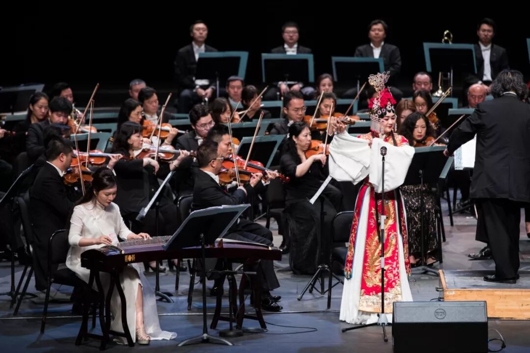 2018年3月17日,在马来西亚吉隆坡,中国国家交响乐团与中国传统乐器古筝以及女高音在“一带一路”马中友好钢琴交响音乐会上表演交响幻想曲《霸王别姬》。新华社记者朱炜摄