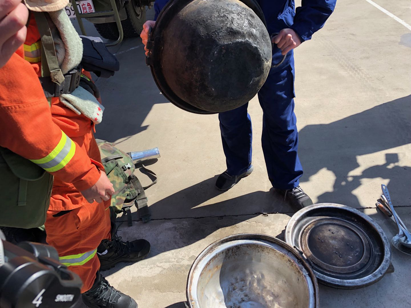 奇乾中队的消防员们一边扑火,一边在火场就地做饭吃饭,以便快速补充能量。这口大铁锅久经火场洗礼,是消防员们的“火场食堂”。(摄影 梁毅)
