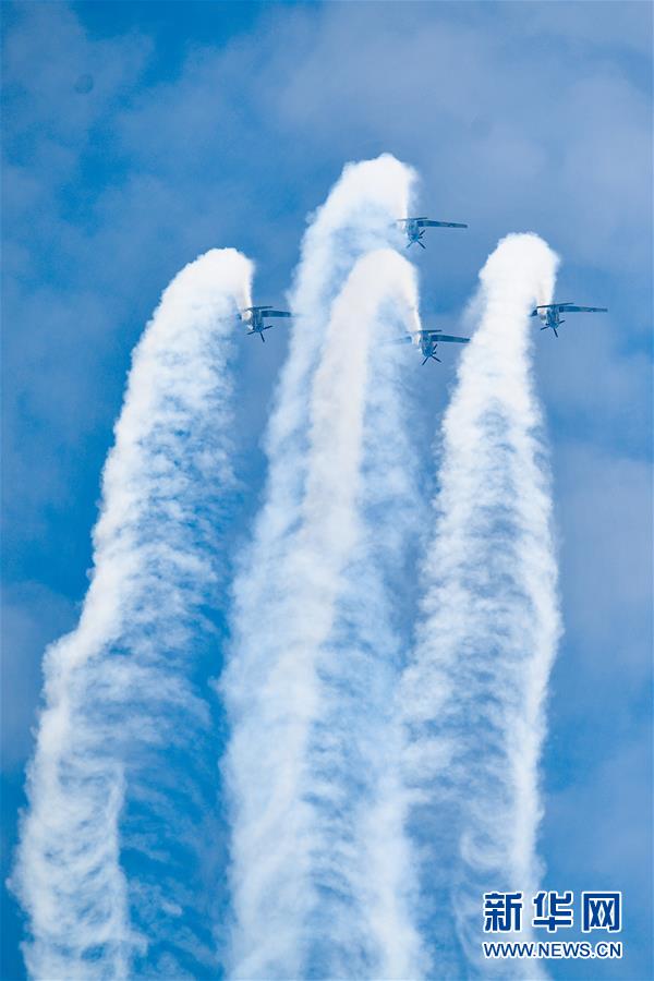 4月27日,在位于墨西哥墨西哥州的圣卢西亚空军基地,飞行表演队在航展上表演。 当日,2019墨西哥国际航空航天展在墨西哥州圣卢西亚空军基地闭幕并举行飞行特技表演等活动,吸引大批当地民众和来自世界各地的爱好者观看。 新华社记者 辛悦卫 摄