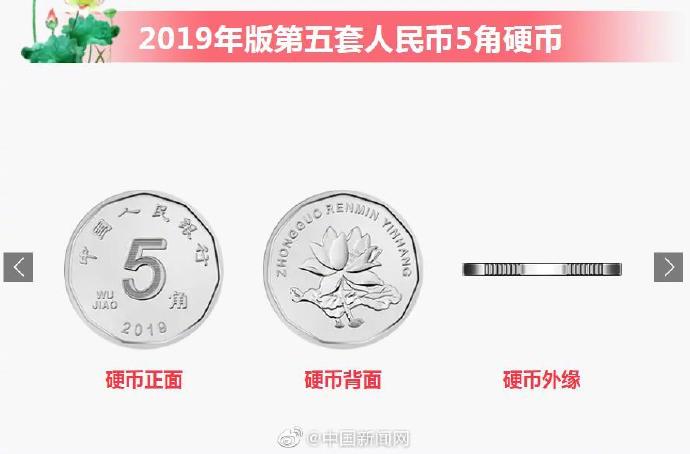 与1999年版第五套人民币1元、5角硬币和2005年版第五套人民币1角硬币相比,2019年版第五套人民币1元、5角、1角硬币调整了正面面额数字的造型,背面花卉图案适当收缩。
