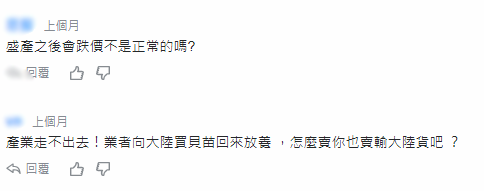 也有人对“贡寮鲍”滞销一事评论称,产品盛产之后跌价很正常。