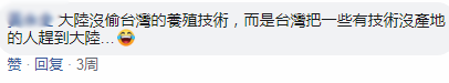 也有网友对岛内“大陆偷台湾”技术的论调反驳称,大陆没偷台湾的养殖技术,而是台湾把一些有技术没产地的人赶到大陆。