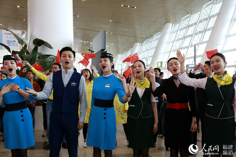 在厦门机场,空少空姐唱响《我们都是追梦人》。