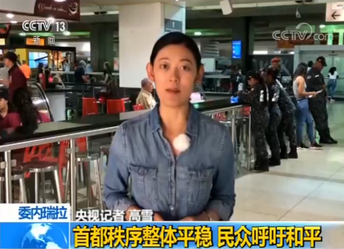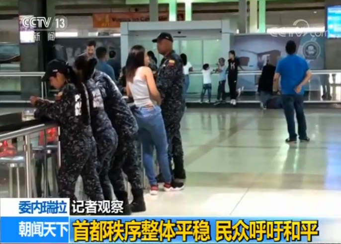 央视记者 高雪:我现在是在委内瑞拉首都加拉加斯的“西蒙·玻利瓦尔国际机场”,我现在所在的位置是机场的国际航班到达厅,在这里一切秩序井然,没有异常的现象,商店和餐厅都正常营业。为了保障安全,有关方面也是加强了军警的部署。