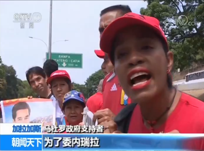 马杜罗政府支持者:支持我们的革命,支持我们的革命进程,为了委内瑞拉,为了拉丁美洲乃至世界的和平。
