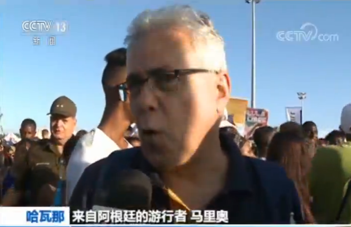 来自阿根廷的游行者 马里奥:古巴人民的力量已经使革命持续了60年,未来还将持续更久。我希望(美国)结束对古巴、委内瑞拉和全拉美的压迫。