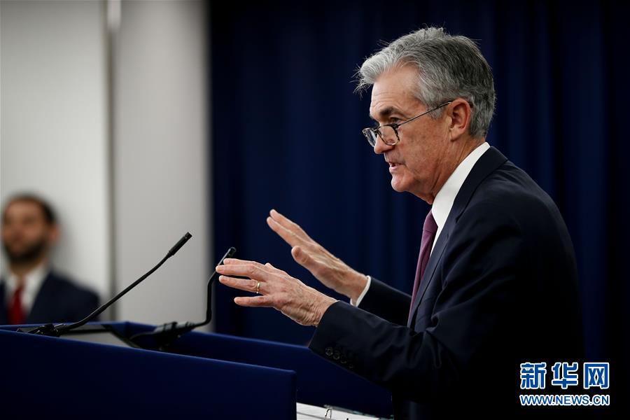5月1日,在美国首都华盛顿,美国联邦储备委员会主席鲍威尔在新闻发布会上讲话。 当日,美国联邦储备委员会宣布将联邦基金利率目标区间维持在2.25%至2.5%不变,符合市场预期。 新华社发(沈霆摄)