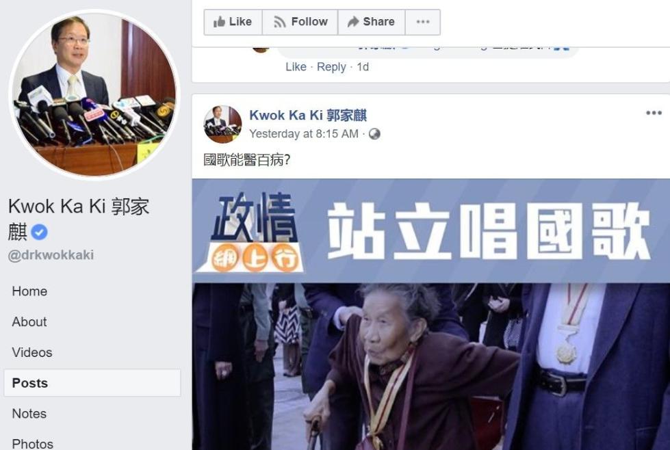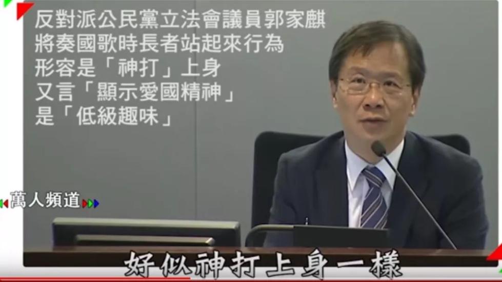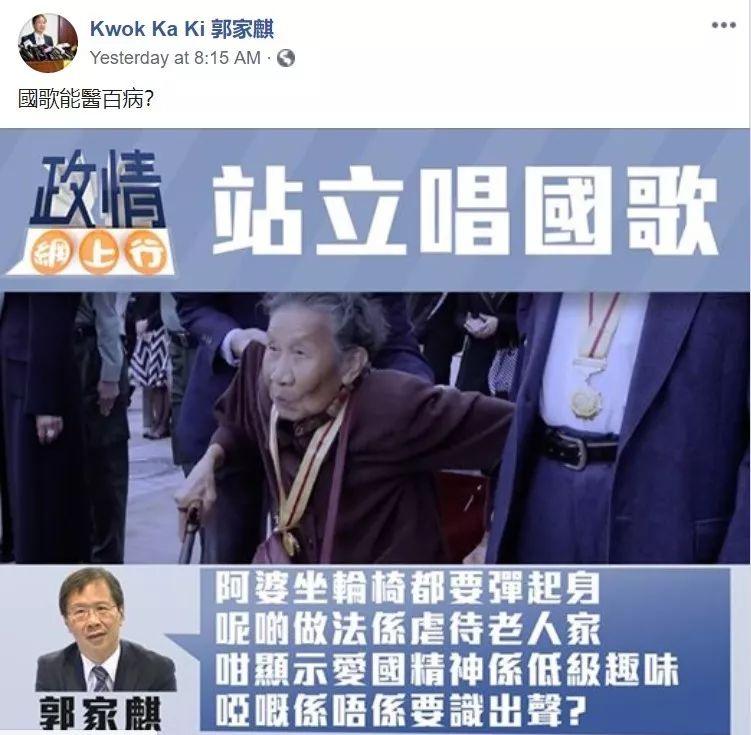 郭家麒是香港立法会“泛民派”的委员,来自香港“公民党”。除了政客的身份,他还是一名医生。然而,本应“医者仁心”的他不仅污蔑老人从轮椅上起身的举动仿佛“鬼上身”一般,更造谣污蔑起“爱国主义”,称“逼老人起身唱国歌”显示了爱国精神的“低级趣味”,是“虐待老人”。