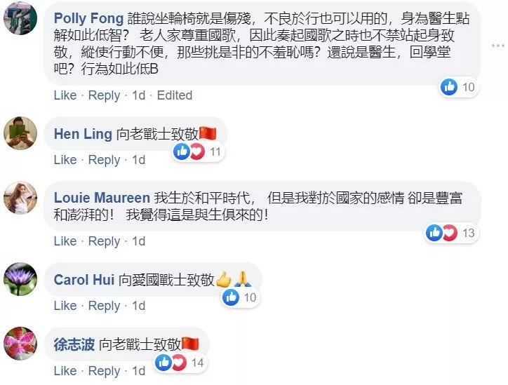 他的这番恶臭言论还吸引来香港网络上的一群“恨国分子”,纷纷“附和”他,一起侮辱这位老婆婆: