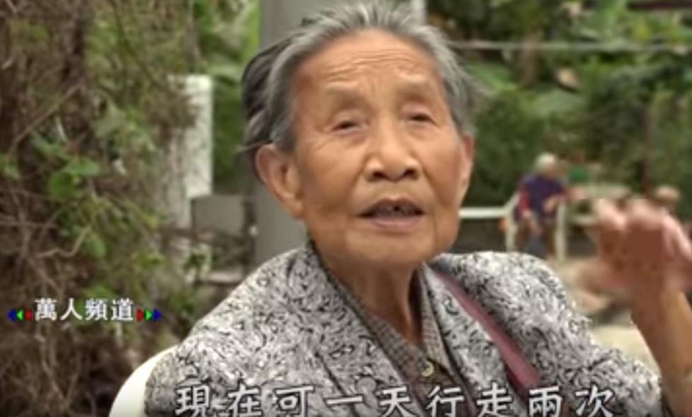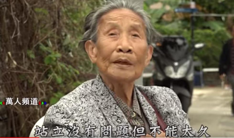 如视频所示,罗志萍老人一方面介绍说自己虽然年事已高腿脚不便,但并不妨碍站立:
