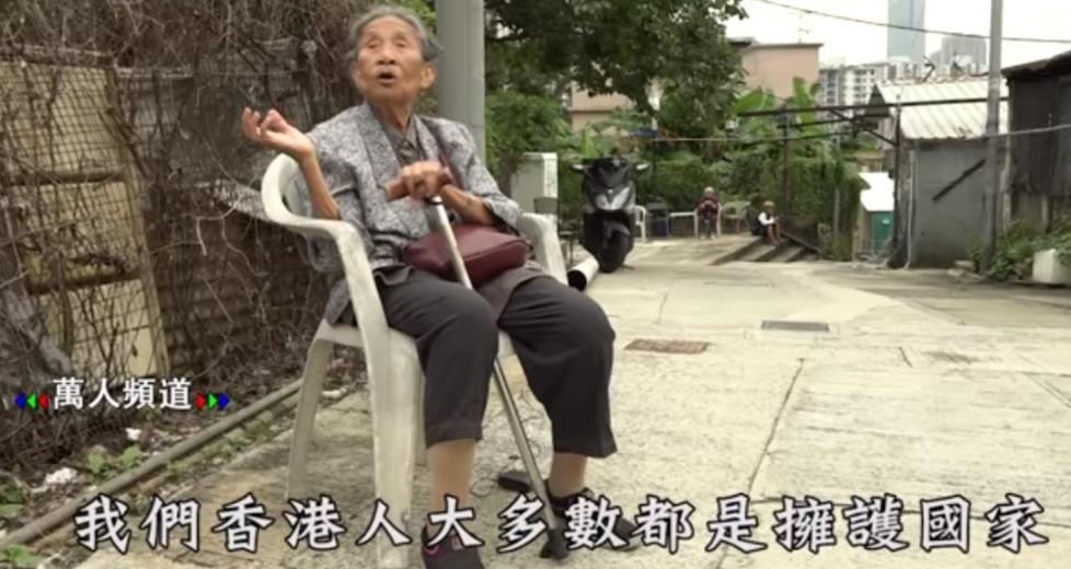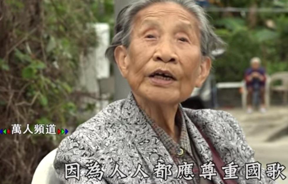 老人还谴责说反对香港人唱国歌、不让香港人唱国歌的人,就不是中国人!