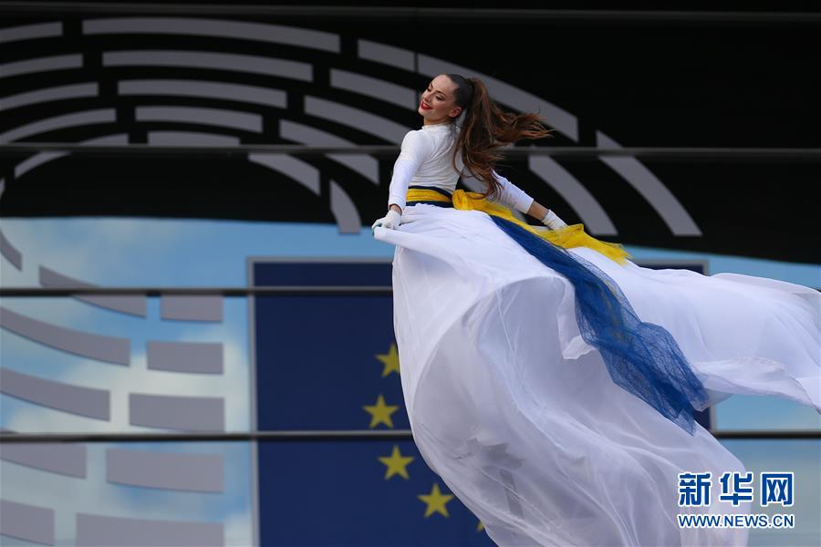 5月4日,在比利时布鲁塞尔,演员在欧洲议会前为公众表演。 当日,欧盟机构举行一年一度的开放日活动。公众可以免费参观欧盟主要机构的办公大楼,参与形式多样的宣传介绍活动,加强对欧盟机构的了解。 新华社记者郑焕松摄
