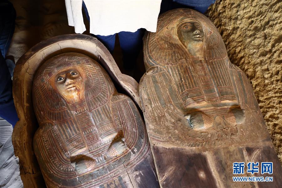这是5月4日在埃及吉萨拍摄的出土文物。 埃及最高文物委员会秘书长穆斯塔法·瓦齐里4日在一份声明中说,埃及一支考古队在吉萨高地大金字塔附近发掘出一处埃及古王国时期(公元前2686年至公元前2181年)的墓地。 新华社发(艾哈迈德·戈马摄)