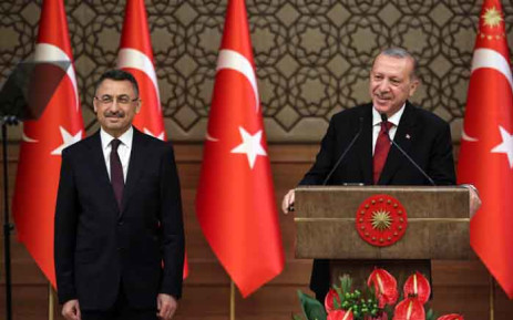 土耳其总统埃尔多安(右)与副总统奧克塔伊(左)。(图:法新社)