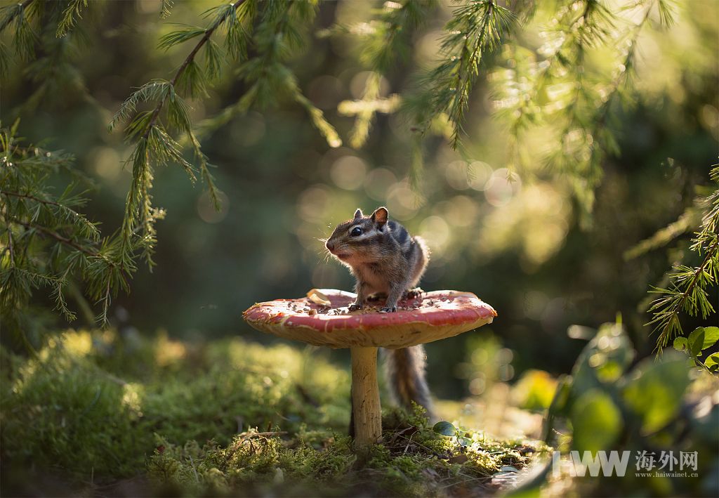 花栗鼠将蘑菇当“T台” 上蹿下跳展现优美身段