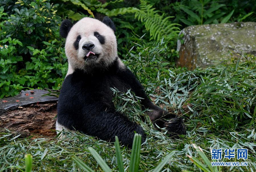 5月6日,大熊猫“团团”在台北动物园熊猫馆吃竹叶。新华社记者 张国俊 摄