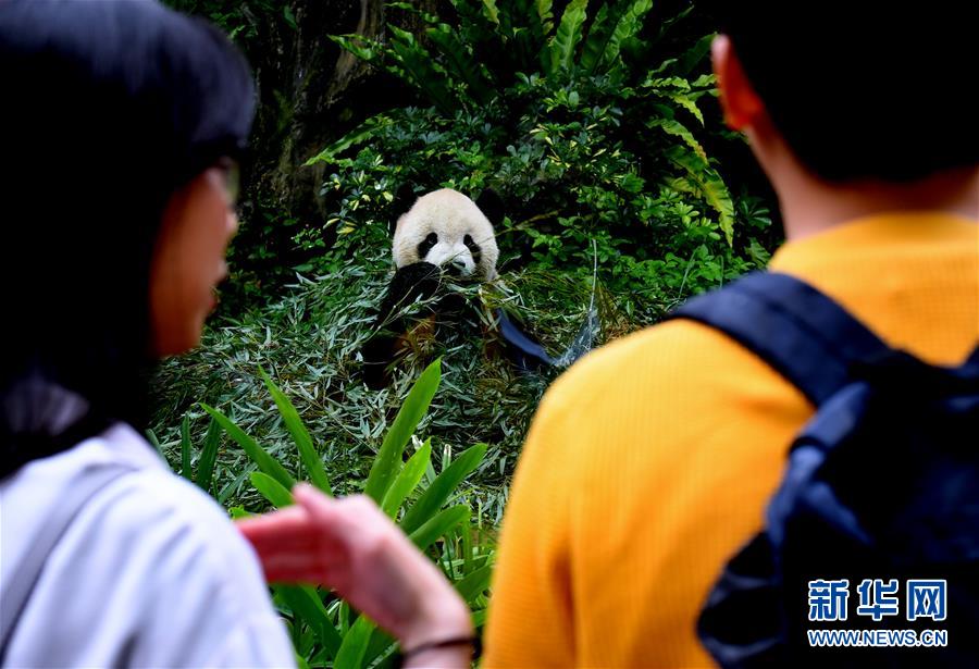 5月6日,游客在台北动物园参观大熊猫。新华社记者 张国俊 摄