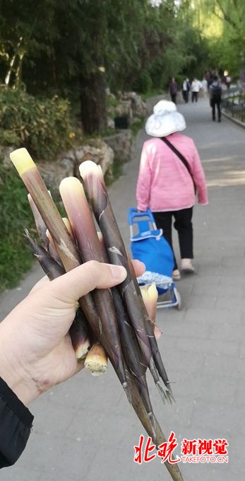 前天傍晚,紫竹院公园一名工作人员在公园正准备下班回家,在穿行公园时,发现竹林间有一名正在盗挖竹笋的老人,他赶忙上前劝阻。老人一开始并不承认自己在挖笋,面对工作人员的好言相劝,她才交出了自己挖的竹笋。“这名老人挖了有六七根。看到这些笋被盗挖,我们真的很痛心。因为公园里的竹子大多是从南方引种过来的,经过几代老师傅的精心栽培和养护才在北京‘安家’。”