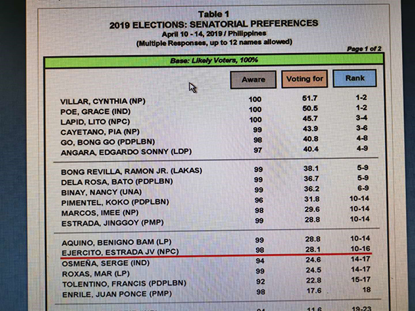 菲律宾民调机构亚洲脉动(Asia Pulse)4月份公布的参议员选举最新民调