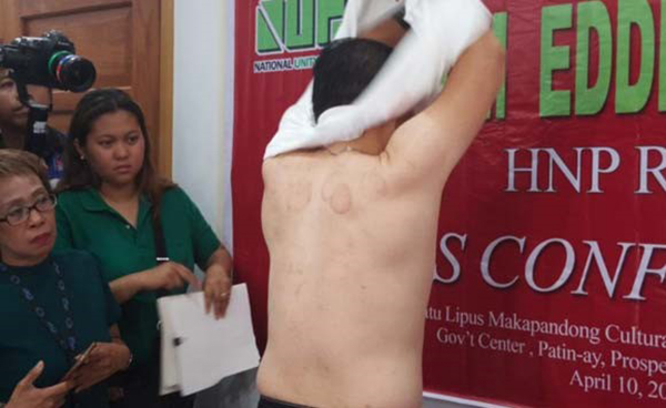 杜特尔特总统强力支持的参议员候选人克里斯多夫·蒙·吴多次在公开场合脱衣服展示自己后背没有所谓的毒品集团纹身。 图片来源:https://politics.com.ph/