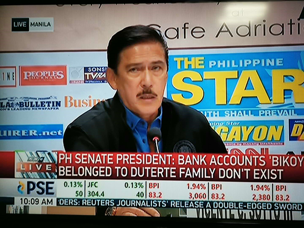 参议长索托5月8日召开记者会,全面驳斥反对派捏造所谓杜特尔特及家人涉毒指控