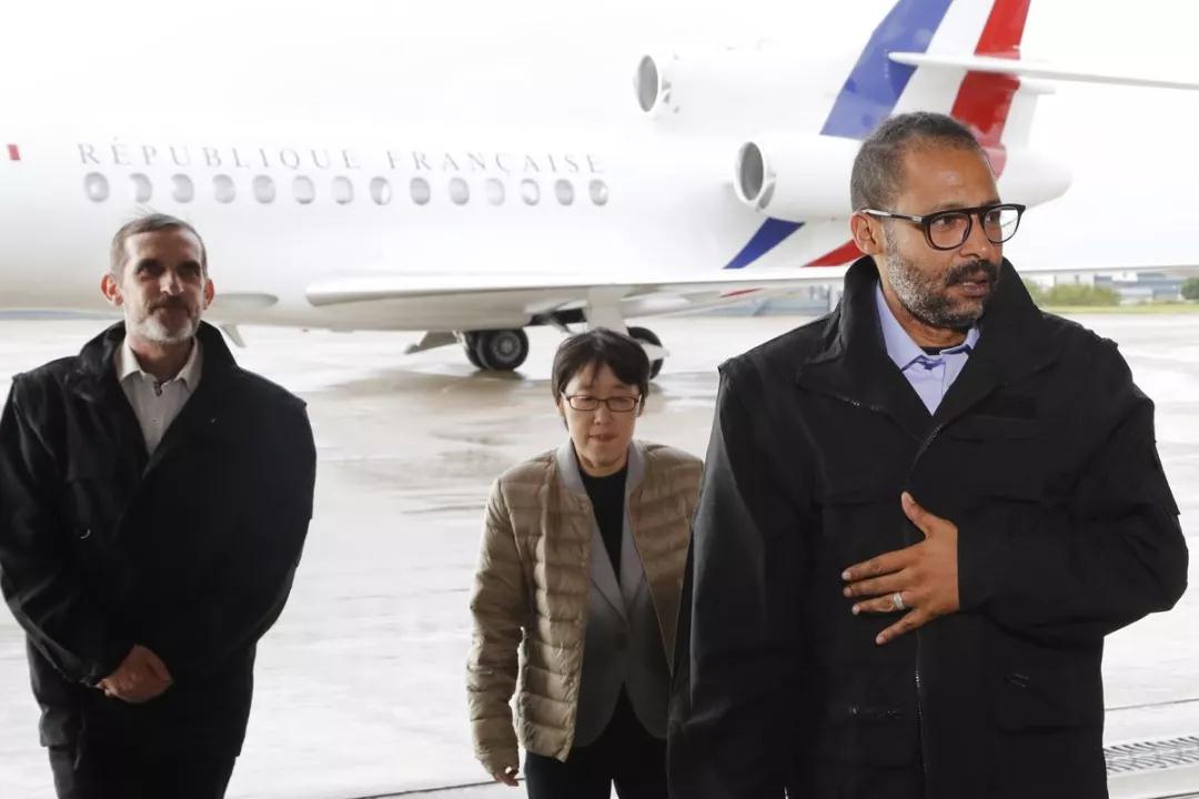 两名法国人质和韩国女人质被救出后抵达巴黎。图源:VOX网站