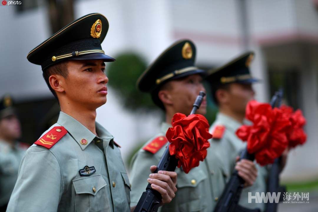 5月14日,驻守在深圳中英街的武警广东省总队执勤第三支队十三中队举行入队仪式,欢迎3名新成员的加入。据悉,每一名新成员的加入都会举行这样的入队仪式,从建队至今已进行了56年。(来源:东方IC/廖键)