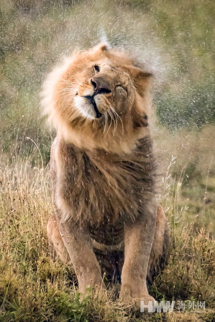 桑尼亚狮子狂甩头抖水变身“甩干机”