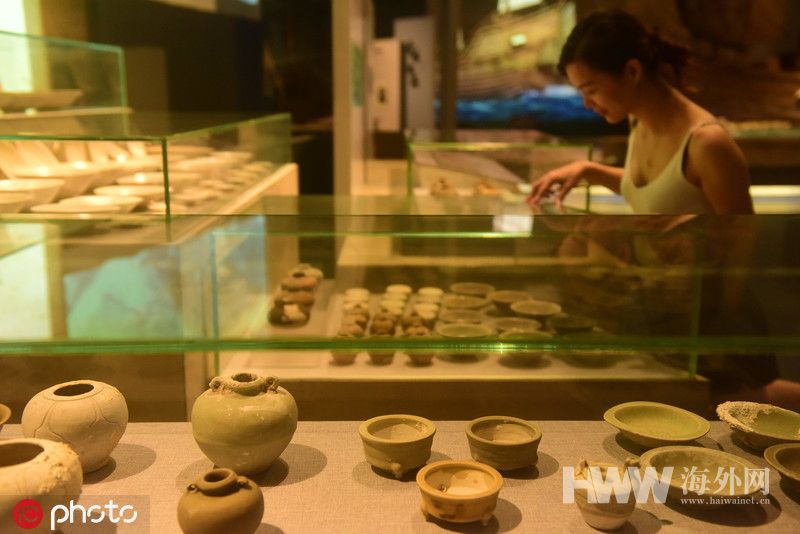 2019年5月16日,海南琼海,游人在中国(海南)南海博物馆参观。来自中国(海南)南海博物馆的统计显示:自2018年4月26日正式开馆一年来,该馆累计接待参观567473人次,其中境外观众4481人次,青少年观众157359人次。全馆现有藏品78910件(套)、标本藏品123件、征集藏品1222件(套),包括更路簿1本、带波斯铭文广彩瓷器10件套等,征集软体动物、棘皮动物、软骨鱼类、硬骨鱼类标本近900件套,接收无偿捐赠藏品3572件(片)。(图:东方IC)