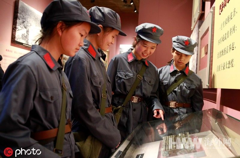 2019年5月9日,江西省吉安市吉水县农村学校留守儿童在井冈山革命博物馆观看革命历史文物。(图:东方IC)