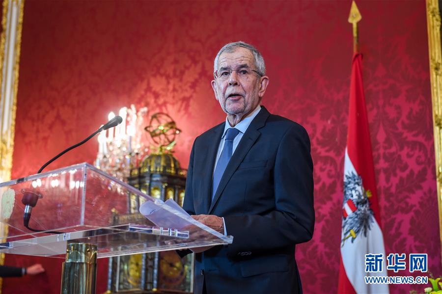 5月18日,在奥地利维也纳,奥地利总统范德贝伦在总统府举行的新闻发布会上讲话。  新华社记者 郭晨 摄