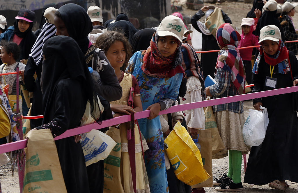 也门面临全球最严重人道主义危机 儿童排队领取救助晚餐