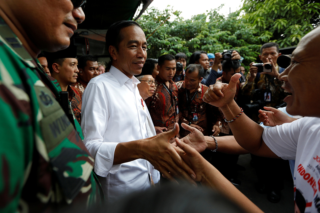 印尼现任总统佐科赢得总统选举 现身与支持者互动