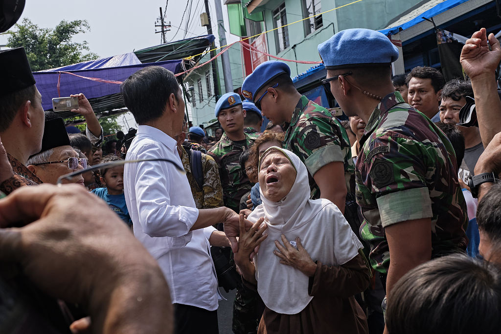 印尼现任总统佐科赢得总统选举 现身与支持者互动